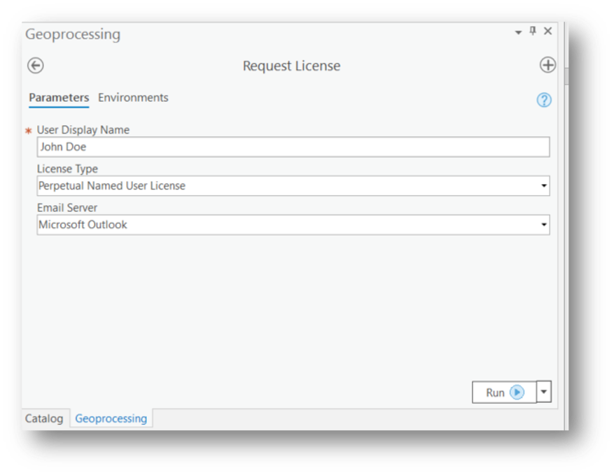 3. Navigate and select the ‘Run’ button located at the bottom right corner of the Request License tool.